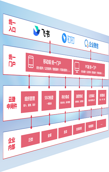 对协作平台提供支持服务,,支持企业应用与协作平台对接,,包含组织同步、、消息集成、、待办集成等。。。支持目前主流的协作平台:钉钉、、企微和飞书。。。